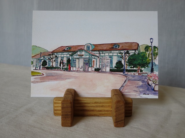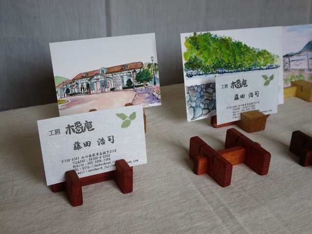 - 写真や絵ハガキ等を飾るためのスタンドです。差込口は2列あり(前後2列の差込角度が、同方向のものと前後反対のものがありますので、ご注文時にはご選択ください)、差込幅は1.3mmとなります。萩市にあるcafe Jantique様にて現品を直接購入することもできます。