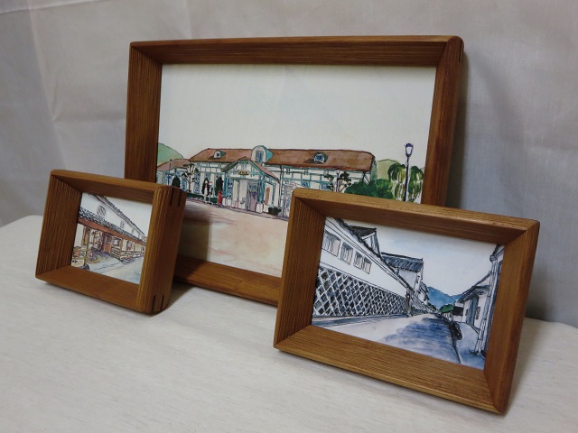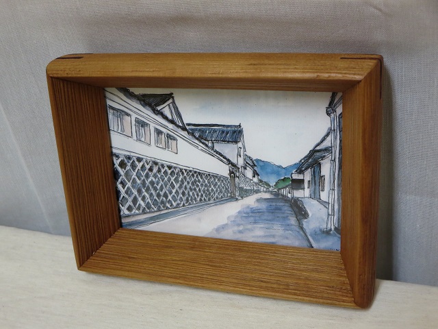 - 成形は手鉋による削り出しで行っています。そのため作品によって微妙に曲面形状および線彫り位置が異なりますことをご了承ください。壁掛け用の金具等は付けていません。ご希望により取付けることは可能ですので、ご注文時にその旨お伝えください。写真の額縁内作品は萩市内の風景画で、萩市在住のアトリエ蔵・蔵貫信さんの作品です。額縁を購入された方には同プリント画を付けてお渡しします。