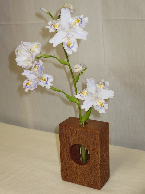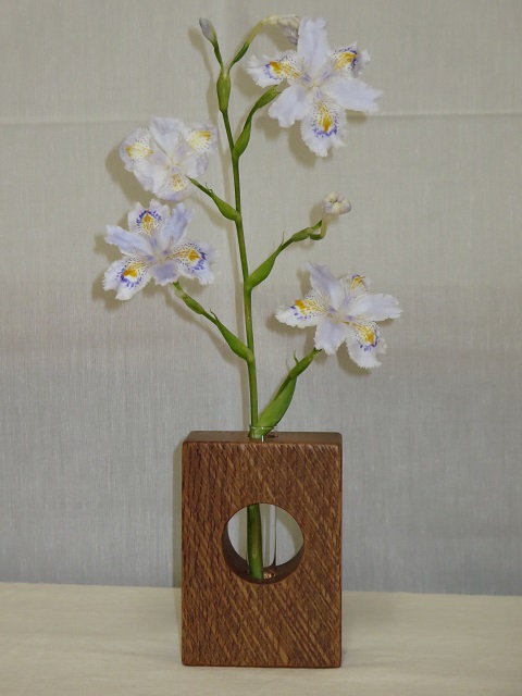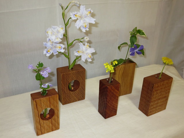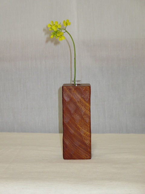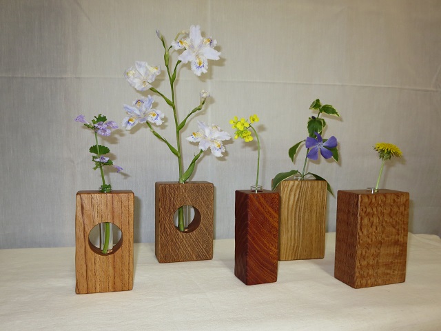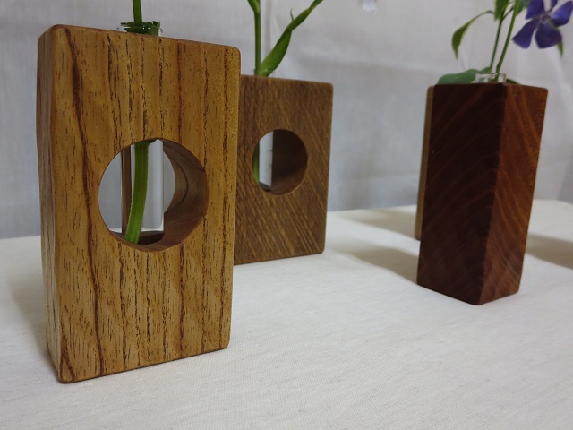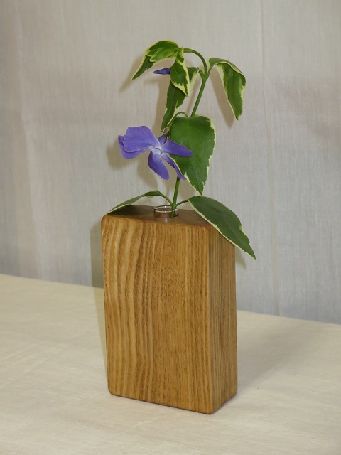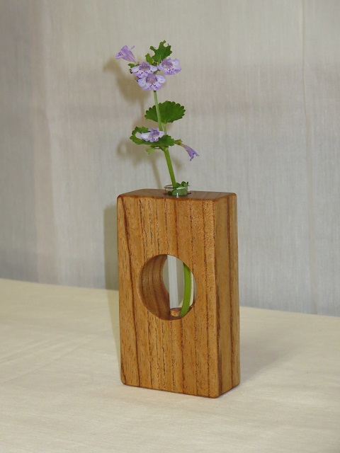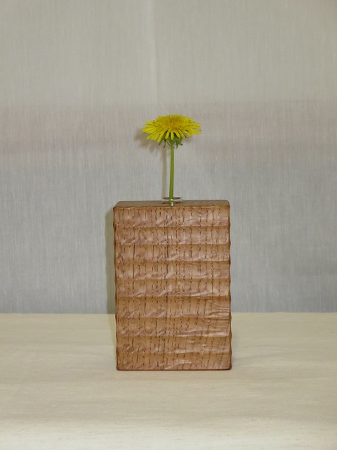 - 手鉋を用いて表面に装飾を施しています。画面では分かりにくいですが、各一輪挿しで装飾は異なります。購入をご検討される方はお見積画面にてその旨ご連絡ください。より詳細な画像を提示致します。付属の壁掛け用の金具(三角吊カン+小ネジ)を取付けることにより壁に掛けて飾ることもできます。