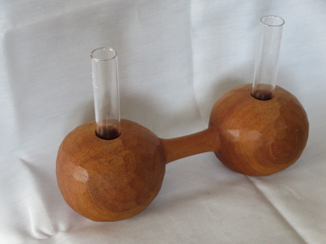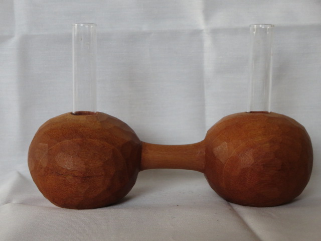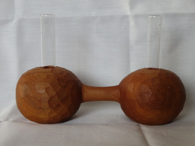 鑿による削り出しで成形し、表面の鑿跡を残したままで仕上げています。一部に割れが生じていますのでご理解のうえご検討ください。ガラス管付(2本)です。