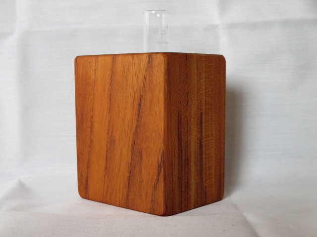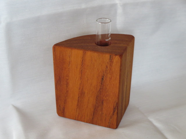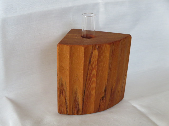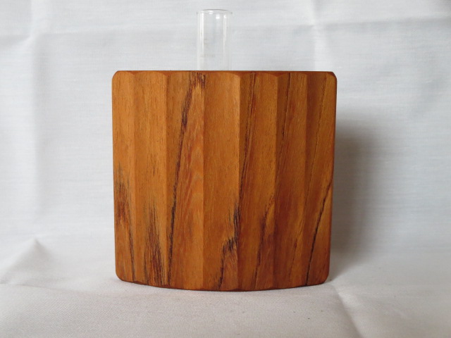 手鉋(外丸鉋)を用いて表面に装飾を施しています。付属の壁掛け用の金具(三角吊カン+小ネジ)を取付けることにより壁に掛けて飾ることもできます。ガラス管付です。