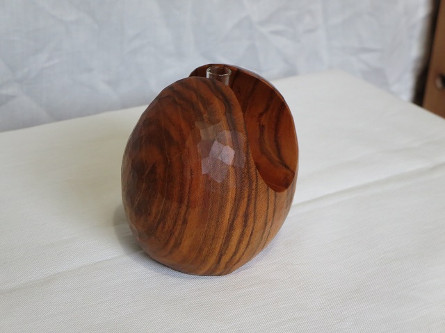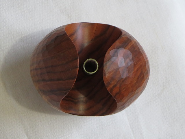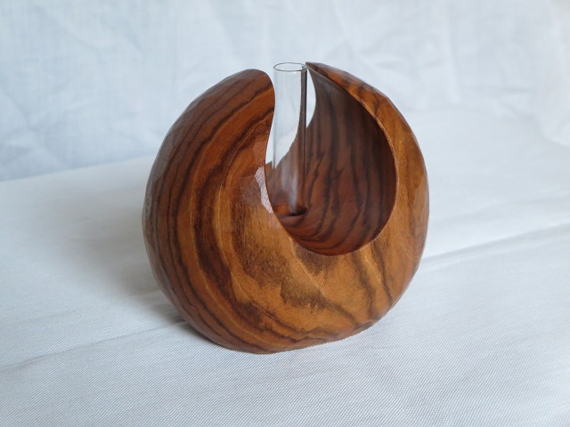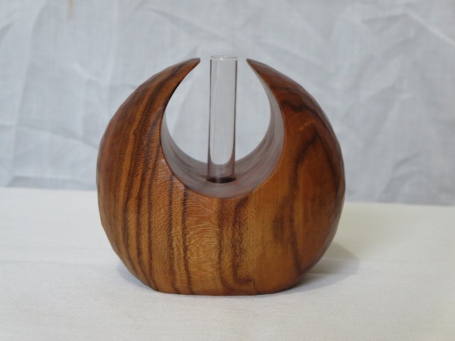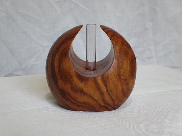 - アロマ関連製品の製造~販売をされている「候(kou)」様(候HPはこちら、候オンラインストアはこちら)とのコラボレーション作品です。鑿による削り出しで成形し、表面の鑿跡を残したままで仕上げています。サンドペーパー仕上げ等による表面成形とは一味違う感触を味わえます。ガラス管付です。一輪挿しとして使用することもできます。